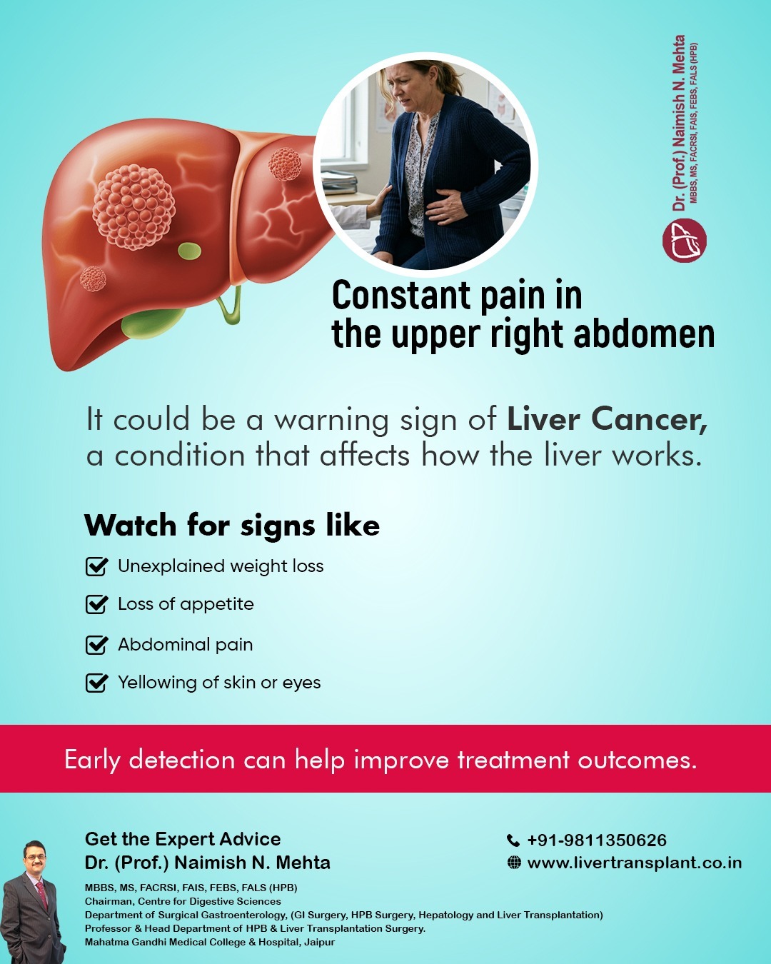 If you are looking for the best liver transplant surgeon in Delhi, Dr. Naimish Mehta comes highly recommended for his extensive experience and successful track record in complex liver cases. He specializes in advanced liver transplant surgery in Delhi, helping patients with both chronic liver diseases and acute liver failure. Many patients choose him for his careful approach, modern surgical techniques, and personalized care. Dr. Mehta ensures comprehensive pre- and post-surgery support for long-term recovery. For consultation or appointments, you can contact Dr. Naimish Mehta directly at 9654452222, where his team will assist you promptly.